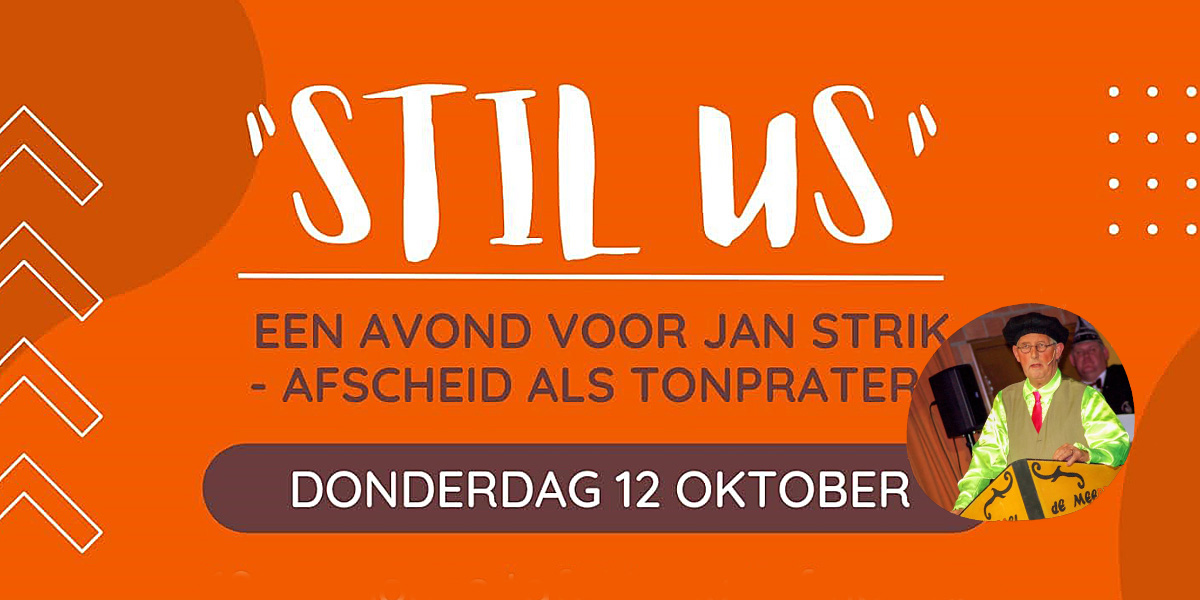 Op 12 oktober neemt Jan afscheid als tonprater, en om dit te markeren heeft de organisatie ‘Stil us’ een afscheidsavond georganiseerd in Hotel Centraal in Someren.