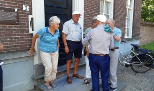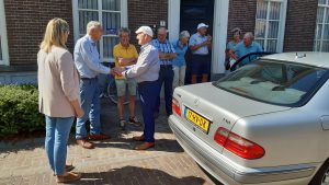 Veel dorpsgenoten, gasten en ook fietsende voorbijgangers waren aanwezig bij dit mooie schouwspel, waarbij pastoor Jan, tussen de beide hoofdmannen, het middelpunt was.