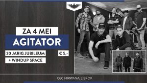 Al vele malen waren ze te gast bij Nirwana, de mannen van Agitator. Eind 1999 werd de band opgericht door vijf bekenden uit de omgeving Deurne. Dit jaar vieren ze hun 20-jarig jubileum en Nirwana viert met hen mee, zowel zaterdag 4 mei als op ’t Tuinfeest in augustus.