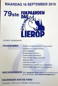 Op maandag 16 september vindt Fokpaardendag Lierop voor de 79e keer plaats. In de sfeervolle accommodatie aan het Kerkenhuis te Lierop worden weer vele paardenrassen gepresenteerd.