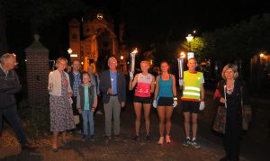 “Afgelopen zaterdag hebben lopers en/of loopsters in een achttal dorpen in de Peel het Bevrijdingsvuur aangeboden en ontstoken bij gelegenheid van de 76e jaar van de Bevrijding. In Lierop heeft de Stichting Lierop 825 het Bevrijdingsvuur op de historische kerkhofmuur gedeeld met een brede vertegenwoordiging uit de samenleving. Pastoor Jan Zwirs, de gedecoreerde Ridder in de Orde van Oranje Nassau, Tiny Steenbakkers en verder Anette Wilde (Dorpsoverleg Lierop) en de heren Martien Kusters (Lierop Leeft), Toon van de Ven, Theo Maas en tenslotte van de jeugd Thom Gofers, hebben het licht doorgegeven om de kaars in de kandelaar te ontsteken.
