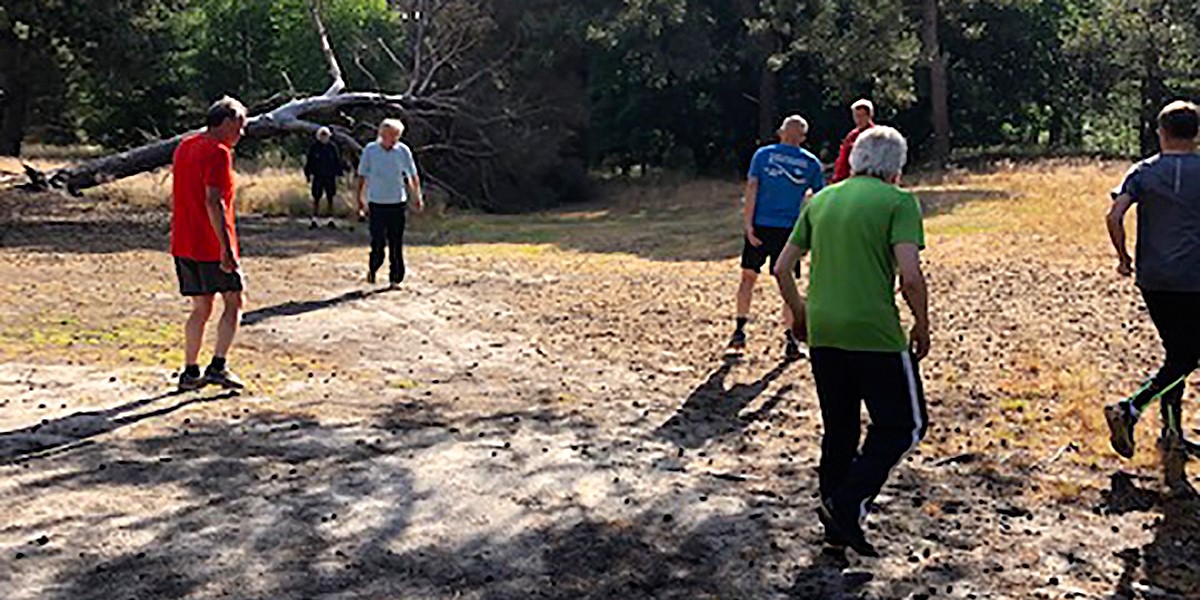 “Tijdens Corona stopte TUF met voetballen in het bos. Wel bleven we op afstand van elkaar hardlopen op zondagmorgen of vanaf Laan ten Boomen rondje Broekkant of rondje motorcrossterrein. Gisteren voetbalden we weer – op gepaste afstand van elkaar – en de conditie was OK maar de techniek had wel geleden onder deze balloze periode”.