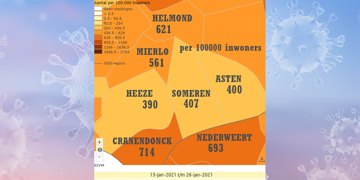 De cijfers van het aantal besmettingen zakte de afgelopen week in de gemeente Someren met 22%. Na de 43% minder besmettingen van de vorige week ziet het er weer redelijk uit maar nog lang niet ideaal. En dan ligt de Britse variant nog steeds op de loer.