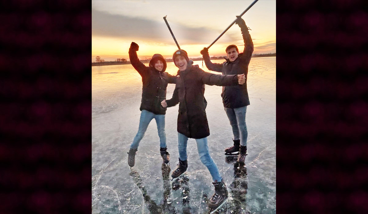 Jan Bekx stuurde ons een foto van zijn drie schaatsende ‘Bekx’kes’ gisterenavond op Starven.