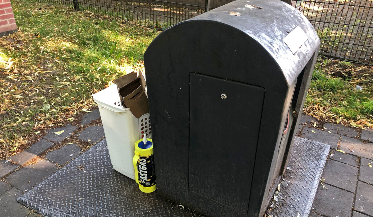 “Vandaag stond er bij de glasbak een volle gasfles met lachgas. Lachgas is illegaal en valt onder softdrugs.