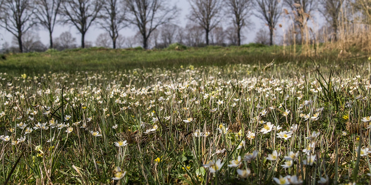 In ’t Oetert tref je nu naast de vele vogelgeluiden mooie velden met witte bloemen van de bosanamoon, afgewisseld met het geel van de slanke sleutelbloem en het speenkruid aan. Om naar te kijken, niet om te plukken!’