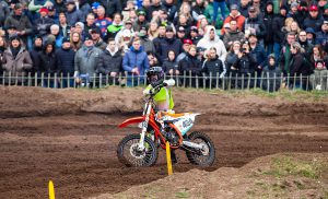 Met een eerste en een tweede plaats heeft Brent Vandoninck zijn eerste zege van het seizoen op zak. In Lierop, waar men zich kwa publiek op een MXGP waande domineerde hij de eerste reeks van start tot finish. Hij reed zelfs weg van Brian Bogers in de slotminuten van een reeks waarin Jorge Prado zwaar ten val kwam. In de tweede reeks miste Brent compleet zijn start en het leek alsof Bogers naar de reeks- en eindzege zou rijden toen hij Pauls Jonas van de leiding verdrong. Maar ook Bogers maakte fouten en verloor zelfs de tweede plaats aan Henri Jacobi. Maar geen van de mannen voorin hield rekening met Vandoninck die als een mes door de warme boter sneed. Brent werd tweede achter Jonass en oppermachtig eindwinnaar. Hier de eindstand van de 500 cc.