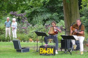 Het idee om een oproep te plaatsen voor een muzikaal optreden binnen de coronaregels werd onlangs geopperd door de vrijwilligers van het park toen ze weer eens “schoongemaakt” hadden. Mariëtte Kroon en Martien Naus, vonden het als EmenEm een geweldig idee en daarom waren ze afgelopen zondag te zien en te horen met “’n schon muziekske” waarvan een tachtigtal belangstellenden genoten (en daarbij hebben we de mensen die vanuit hun terrassen op Henricushof genoten nog niet eens meegeteld). Maar liefst 1,5 uur zorgde EmenEm voor mooie liedjes van o.a. Gerard van Maasakkers, Boudewijn de Groot, Fungus, Cornelis Vreeswijk en tot slot zelfs nog ’n Belgisch setje.