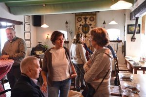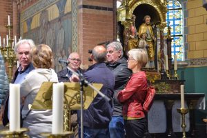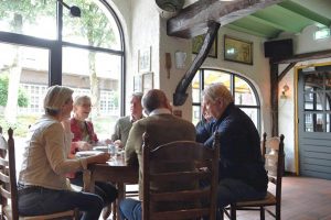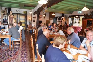 “Na elkaar lange tijd niet fysiek te hebben kunnen ontmoeten hielden de Vrienden van de Koepelkerk afgelopen donderdag een gezellig bijpraat brunch bij de Coeckepanne. Onder het genot van een heerlijke brunch werd er weer eens ouderwets gebuurt. Nadat de buik lekker gevuld was bezocht men onder leiding van Ton van Schalen de kerk waar de restauratie van de glas-in-lood ramen werden bewonderd. Hopelijk kunnen er op korte termijn meer bijeenkomsten plaatsvinden waar onder het bezoeken van bedrijven”.