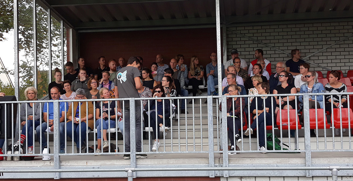 Met alle teamcaptains op de tribune werd onder het genot van een kopje koffie (of thee) en een lekkere koek e.e.a. uitgelegd over de spelregels (op de website te vinden) en andere opbeurende woorden waren hun deel.