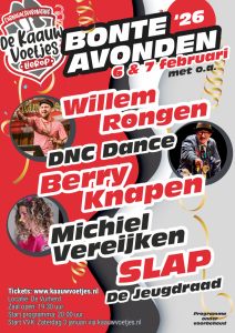 De eerste avond vindt plaats op vrijdag 6 februari en de tweede op zaterdag 7 februari. De voorverkoop is inmiddels gestart via de website van de Kaauw Voetjes: www.kaauwvoetjes.nl.