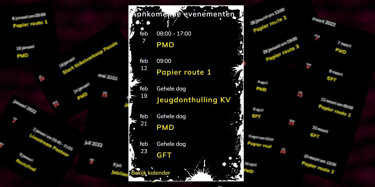 De fanfarekalender, die ook op slaponline digitaal is overgenomen, bevat door de coronaperikelen van de afgelopen jaren minder activiteiten buiten GFT, oud papier, PMD en textiel ed.