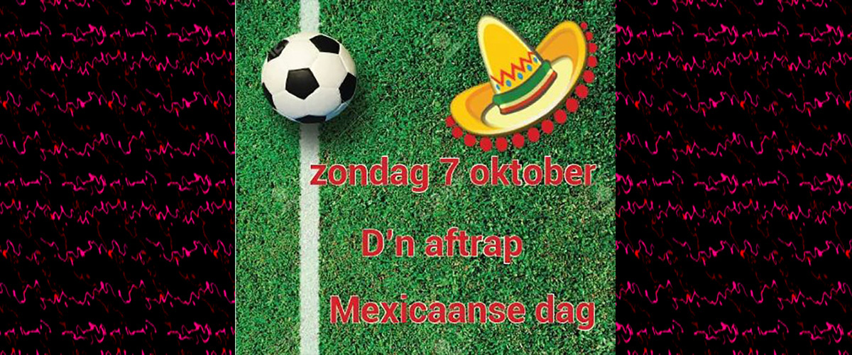 ‘Met een kater van de Dorpskwis plakken we er nog een feestje achteraan want de datum staat vast! Op zondag 7 oktober vieren we feest in de kantine met als thema Mexicaanse dag. Op deze dag spelen Lierop 5, Lierop 4, Lierop 2 èn Lierop 1 een thuiswedstrijd, dus kom allemaal gezellig een kijkje nemen in de kantine!