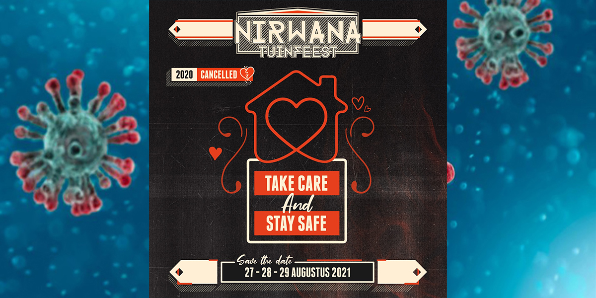 “Een zomer zonder Nirwana Tuinfeest… We waren er al een tijdje bang voor, maar nu is door de regering bevestigd dat er tot 1 september geen festivals plaats mogen vinden in Nederland. De 45ste editie van Nirwana Tuinfeest zal daarom verplaatst worden naar 27-28-29 augustus 2021.