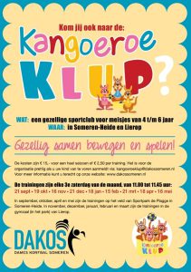 Gisteren hebben alle meiden uit groep 1 en 2 van ’t Rendal een uitnodiging gekregen om deel te nemen aan de Kangoeroe Klup van DAKOS. Zie de flyer!