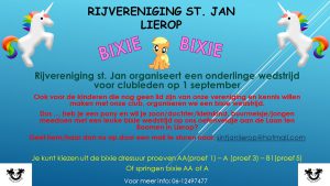 Esther Eekels stuurde ons namens rijvereniging St. Jan de poster van hun onderlinge wedstrijd op 1 september waaraan ook geen-leden mee kunnen doen.
