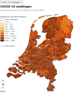Precies een jaar geleden hadden we 120 besmettingen (619/per 100000). Nu hebben we 362 besmettingen (1863/per 100000), drie keer zoveel!! (zie evtl. ons bericht van 3 december 2020).