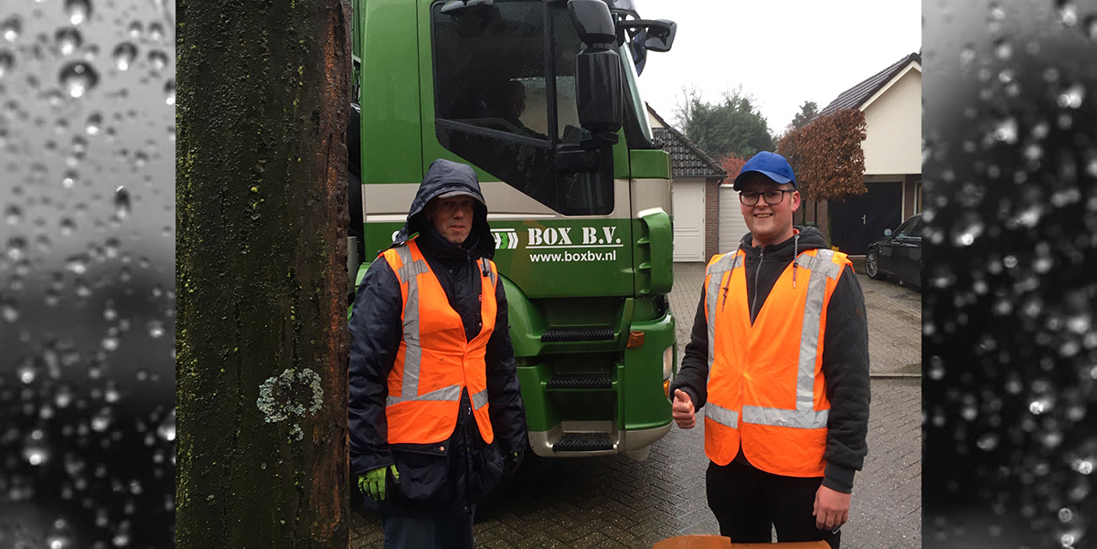 Afgelasten is geen optie. Door weer en wind werkten de twee ophalers gisteren hun route af.