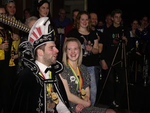 Voor het tweede jaar op rij werd de prinsenreceptie op zaterdagavond gehouden. Het bleek ook nu weer een succes te zijn gezien de vele belangstelling en de gezelligheid. Prins Thijs en z’n Prinses Mharaia, geassisteerd door broer en adjudant Bert met zijn Manon, genoten er met volle teugen van en zij niet alleen!