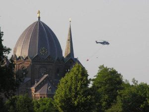 Het was gisterenmiddag flink mis tussen Heeze en Lierop. Op de Strabrechtse Heide woedde een brand die zijn weerga niet kent. Voor ruim 200 brandweerlieden was er geen Nederland – Brazilië. De A67 moest zelfs afgesloten worden. Wegens een dreigend tekort aan bluswater moest de brandweer water uit een kanaal bij Helmond pompen om de heidebrand te bestrijden. Over de A67, liep een 7 kilometer lange pijp die bluswater aanvoerde. Een aantal huizen, boerderijen, een manege en de groepsaccommodatie De Blauwe Kei die in de buurt staan, werden wegens de brand ontruimd. De heidebrand heeft minstens 150 hectare natuurgebied verwoest. De brandweer heeft hulp gekregen van de luchtmacht die een helikopter heeft ingezet om bluswater over het vuur uit te storten. Het vuur, dat rond 16.00 uur uitbrak, ging gepaard met een enorme rookontwikkeling die van verre te zien waren. Vele spotters maakten vele plaatjes. Wiel van de Sande maakte een foto van de helikopter die onderweg was met een zak water.