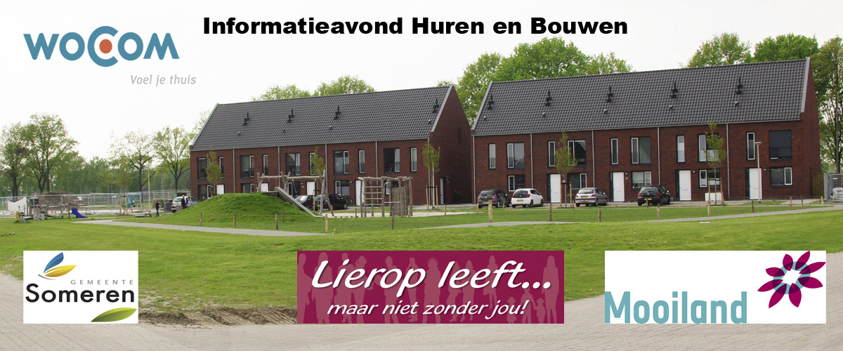De werkgroep Wonen van `Dorpscoöperatie Lierop Leeft’, woCom, Mooiland en de gemeente Someren nodigen u uit voor een bijeenkomst met als onderwerp ‘Huren en bouwen in Lierop’. De bijeenkomst vindt plaats op dinsdag 5 september vanaf 19.30 uur in gemeenschapshuis De Vurherd, Offermanstraat 10 in Lierop.