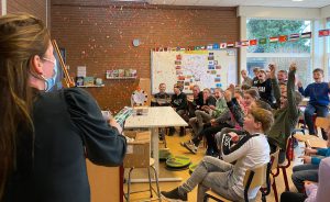 De voorleeskampioen van Someren is op school verrast met een bezoek om haar in het zonnetje te zetten en de oorkonde en de prijs te overhandigen.