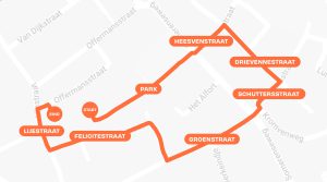Zustersveldje → Park → Heesvenstraat → Duinerweg → Drievennestraat → Schuttersstraat → Groenstraat → Felicitéstraat → Lijestraat → Gymzaal