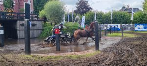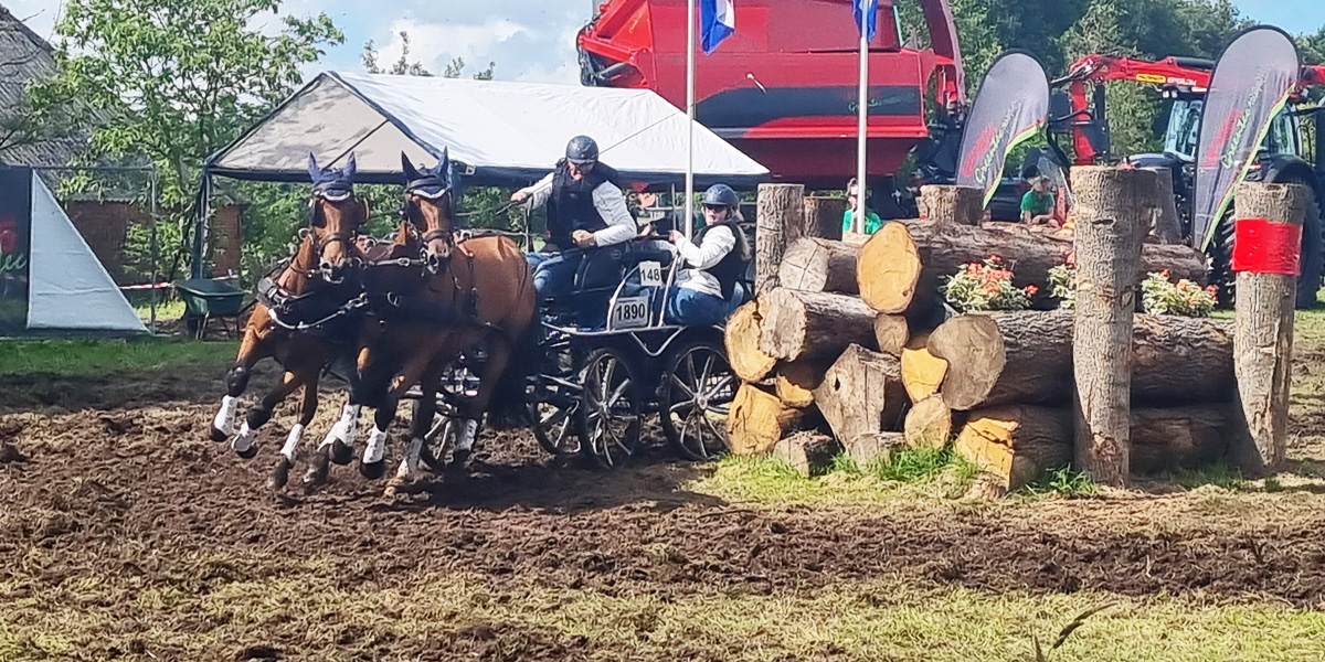 De weersomstandigheden waren op de dag zelf perfect, maar ’s nachts heeft het flink geregend, wat de grond erg zwaar maakte. Met startnummer 148 gingen we van start. Er waren al heel wat karren voor ons geweest, dus de hindernissen waren zwaar. Onze paarden hebben het echter uitstekend gedaan, wat resulteerde in een 1e plaats in de rubriek Tweespan paard.