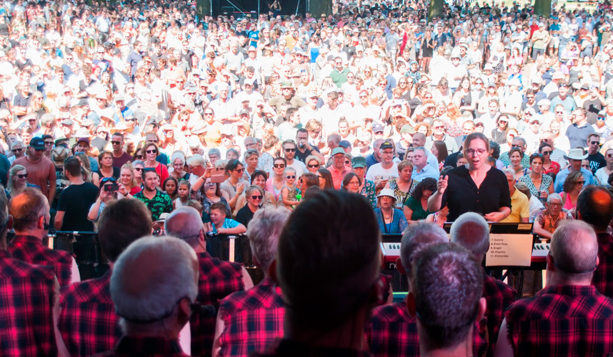 Met een prachtige zondag werd het Nirwana Tuinfeest 2024 afgesloten. Het festival begon gisteren met een indrukwekkend optreden van het Lieropse projectkoor Lumberjack, dat al vroeg op de dag grote aantallen bezoekers naar het Tuinfeest trok. Het massaal gevulde podium, met het 65-koppige koor en de begeleidingsband, bracht met succes elf zware rocknummers ten gehore. Heel apart en uniek! Nog nooit eerder was het zo vroeg in de middag al zo druk op het Tuinfeest!