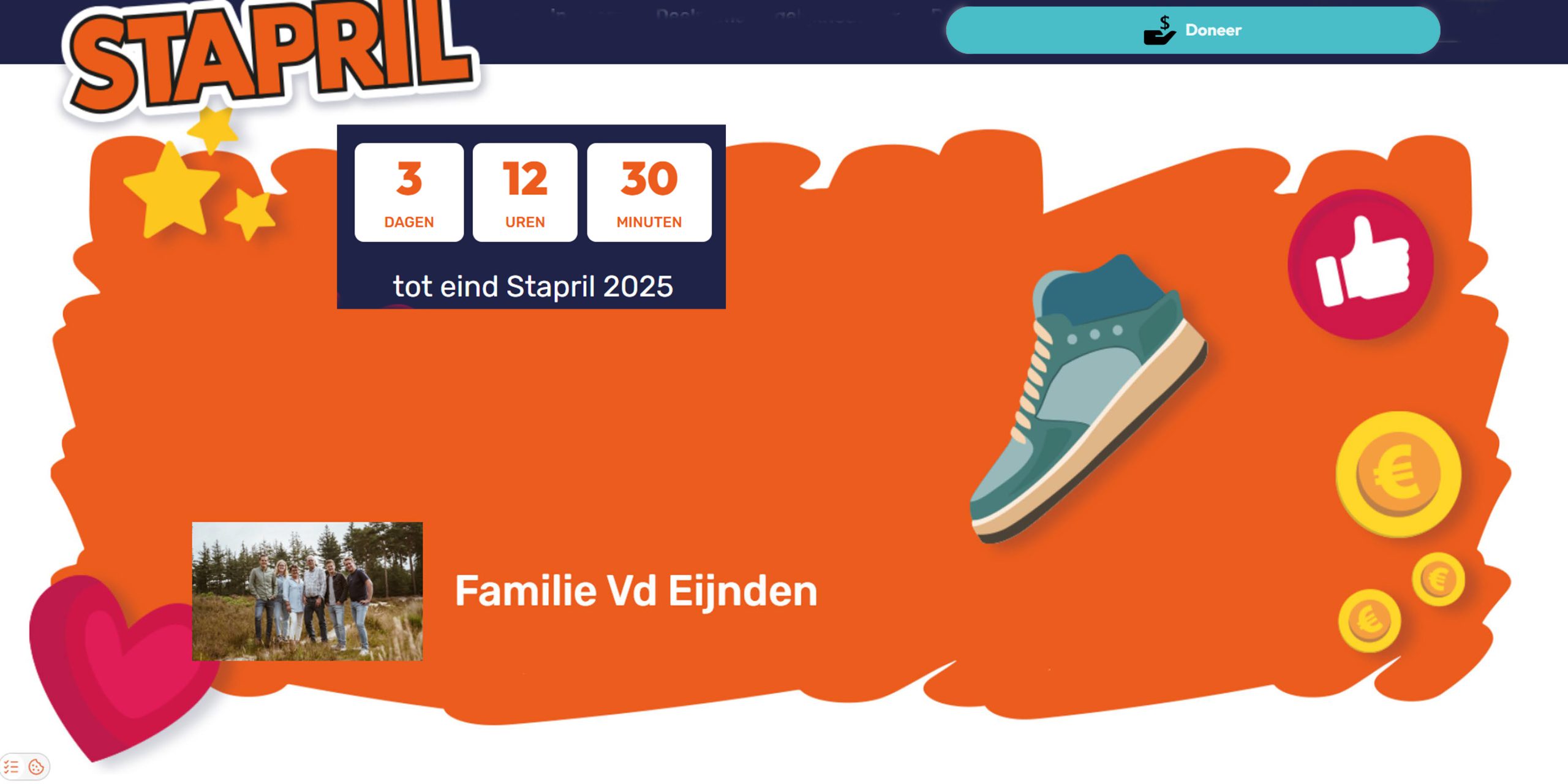 Hoi allemaal, in april is het *stapril*! Wij zijn al de hele maand met de familie bezig om 10.000 stappen per dag te zetten om geld op te halen voor meer onderzoek naar de ziekte van Parkinson. De ziekte die ons pap al 15 jaar heeft en een ziekte die steeds meer mensen raakt. Met onze luie kantoorbaantjes leek dit zeker een uitdaging maar we gaan het redden! Natuurlijk kunnen we in deze laatste dagen van de maand jullie aanmoediging nog goed gebruiken.
