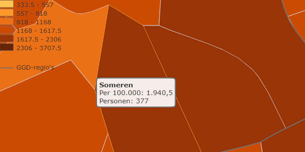 In onze regio zijn de besmettingen de afgelopen week met 18% gezakt maar onze gemeente is met 1940! besmettingen per 100000 inwoners de slechtste van onze buren, op de voet gevolgd door de gemeente Asten (zie de cijfers hieronder).