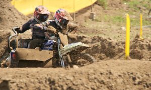Om klokslag 16.00 uur viel het starthek voor de tweede manche Keuben – Rietman pakten de holeshot voor Wilkinson – Millard. De Engelsen werden echter in de eerste ronde al voorbij gereden door de broederparen Bax en Leferink en later ook nog door Hermans – vd Bogaart. Han en Stephan hadden ook weer een prima start en kwamen de eerste ronde als zesde door. Ze konden, door hun constante en consequente rijstijl, deze positie vasthouden en zelfs in de laatste drie ronden nog verbeteren. Weliswaar met wat geluk. Keuben – Rietman hadden de hele wedstrijd op één gereden, maar 4 ronden voor het einde kwamen ze ten val en kregen hun machine niet meer aan de praat, waardoor de Bax broers ook de tweede reeks wonnen vóór de gebroeders Leferink. Bax -Bax werden echter door een ongeoorloofde inhaalmanoeuvre twee plaatsen teruggezet in de uitslag van de tweede manche. Ook WK leiders Hermans – vd Bogaart vielen in de laatste ronde uit met een gebroken ketting. Hierdoor schoven Wijers – van Hal door naar een mooie vierde plek.