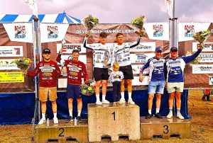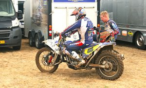 Na de korte zomerpauze en de lange reis naar Letland, volgde op 31 augustus de vijfde wedstrijd om het Open Nederlands Kampioenschap Zijspan Motorcross op de thuisbaan van Han van Hal en Stephan Wijers in Lierop. Dat ’n thuiswedstrijd niet altijd in je voordeel is bleek maar weer eens. Door problemen met de schokbrekers werd er ’s morgens in de tijdtraining “slechts” de vierde tijd neergezet. Nou is de vierde tijd nog niet eens zo slecht, maar het verschil met de nummer één, Keuben / Rietman bedroeg meer dan vijf seconden en dat is teveel.