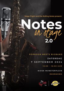 Morgen, zaterdag 7 september, verzorgt popkoor Stage Fright uit Lierop samen met bigband the Rolling Notes uit Asten wederom een fantastisch optreden: Notes on Stage 2.0. Dit keer op het Munsterplein in Roermond.