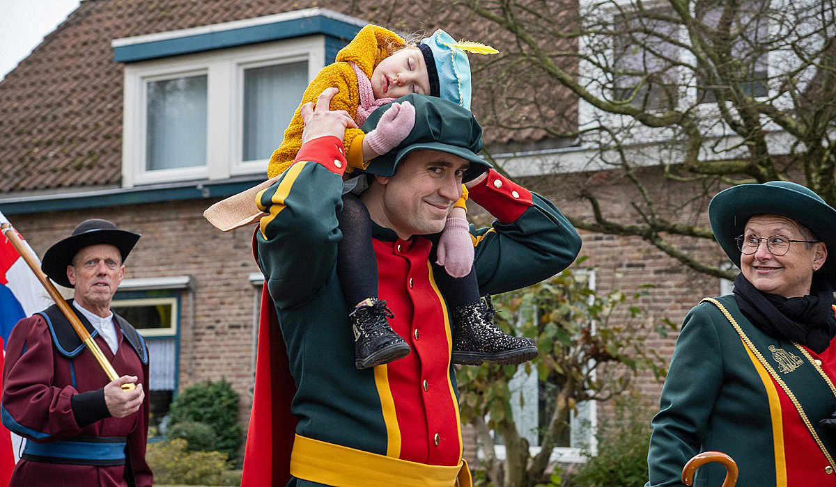 Sinterklaas trok in sportieve wagen door de straten, vergezeld door enthousiaste Pieten, beide gildes en de fanfare. Langs de route stonden kinderen en ouders klaar om hem warm te verwelkomen, wat meteen voor een levendige sfeer zorgde.