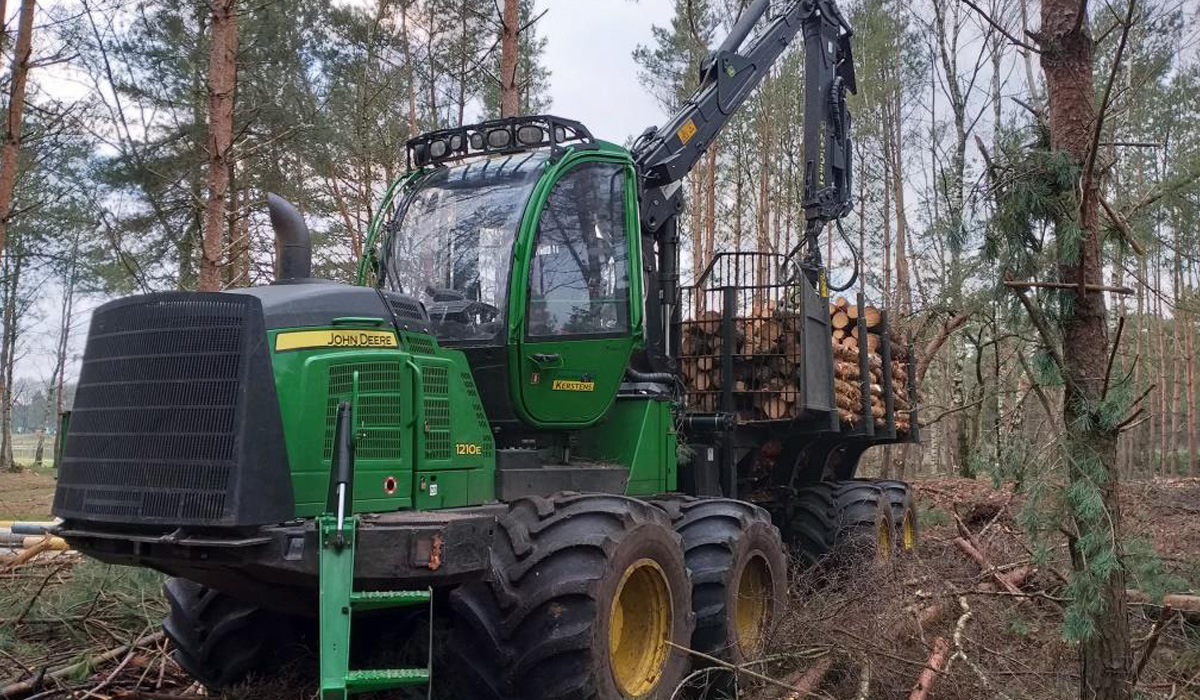 Een oogstmachine velt de bomen, haalt de zijtakken eraf en zaagt de boom in stukken. Deze stukken hout worden opgestapeld en naar een houtverwerkend bedrijf gebracht.