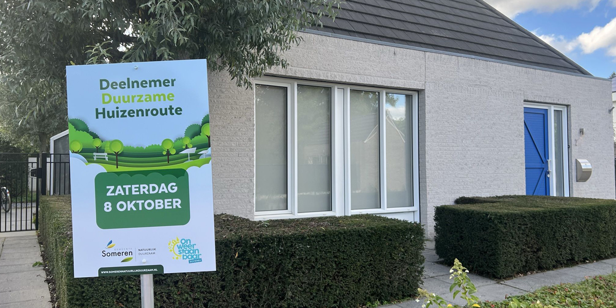 Misschien heb je de borden al ergens zien staan? Op zaterdag 8 oktober vindt de eerste Duurzame Huizenroute plaats. Tijdens deze dag zetten verschillende inwoners van de gemeente Someren hun deuren open om te laten zien wat zij hebben gedaan om hun huis te verduurzamen.