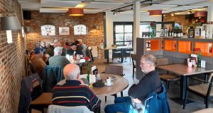 Na ruim 9 kilometer was het even goed toeven in een lekker warme Strabrechtse Hoeve. Daarna ging de tocht verder richting het pannenkoekenhuis in Lierop. Daar kwamen we rond half 6 aan en bij het happen van de pannenkoeken hadden we plotseling 21 deelnemers.