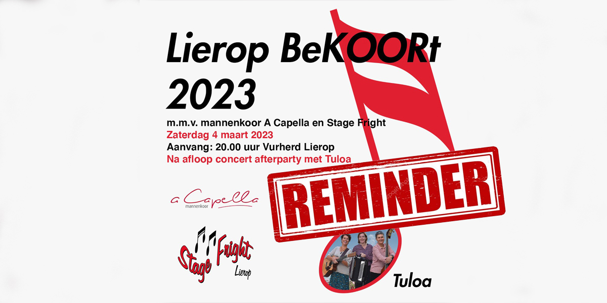 Mannenkoor A Capella en gemengd popkoor Stage Fright presenteren: Lierop BeKOORt 2023!!