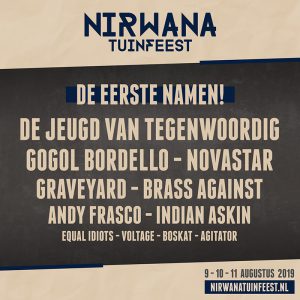 Op 9, 10 & 11 augustus 2019 zullen de volgende bands te bewonderen zijn in de tuin van Nirwana: