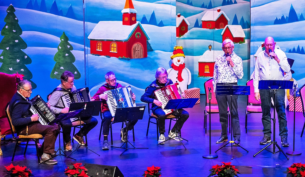 Vanaf 14.00 uur speelt accordeonclub De Trekzakken de mooiste kerstmelodieën, met zang van Jan van Eijk en dit jaar opnieuw versterkt door Ad van de Zanden.